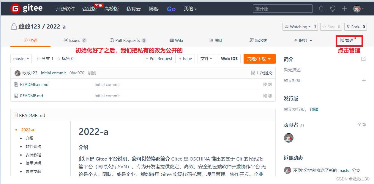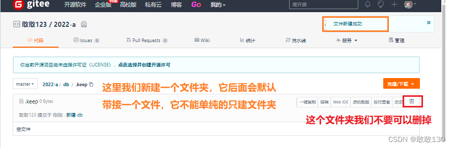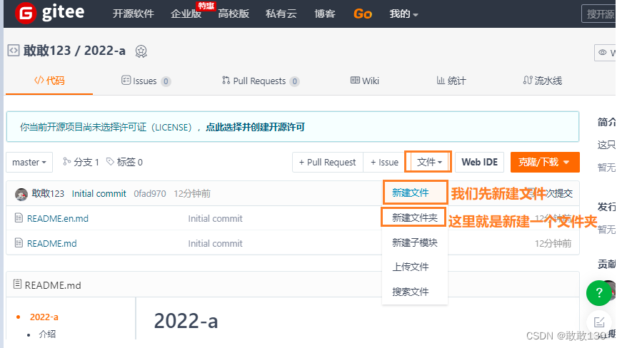 我们在去gitee里面去刷新一下看看我们从本地搭建好的项目上传到了gitee中没有如图所示: