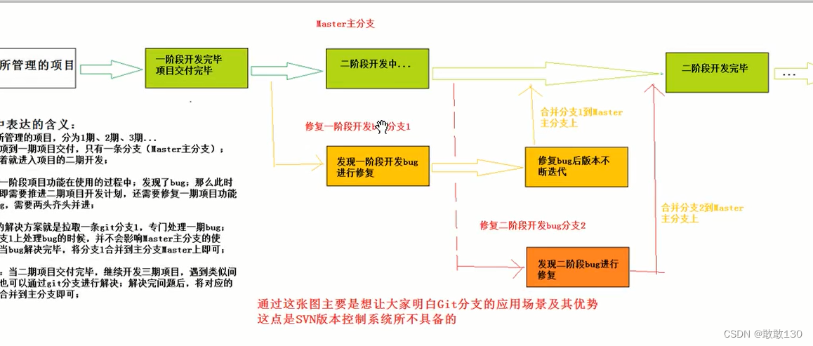 GIT分支和SVN的分支不同,分支在SVN中一点不特别,就是版本库中的另外的一个目录。