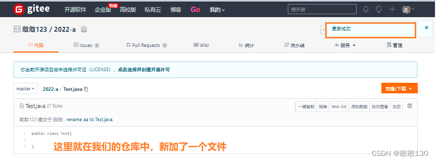 我们现在可以去gitee中去看一下这个Order.java里面的内容是什么