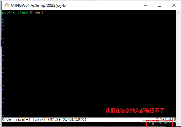 再按 :wq 保存编辑文件修改的内容,回到git命令窗口