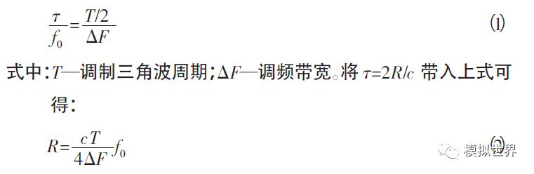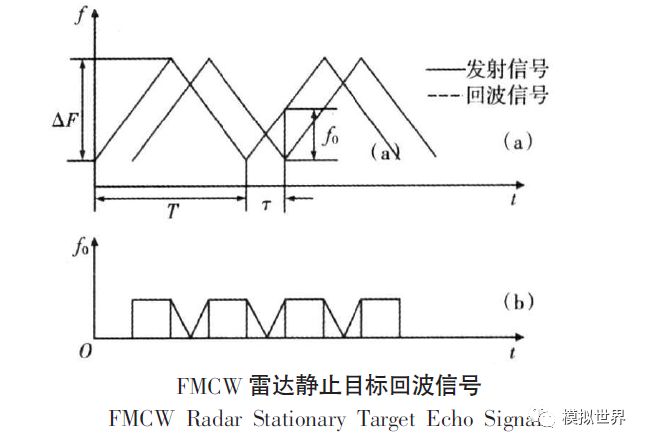 发射信号与回波信号的频率差即为混频输出的中频信号频率f0,根据相似三角形的关系,由上图(a)可以得出: