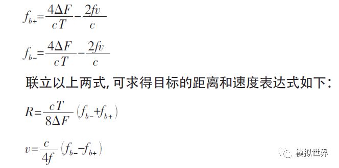 上两式中为目标物体相对静止时中频信号的频率,为多普勒频移。由距离公式R和多普勒频移公式可得: