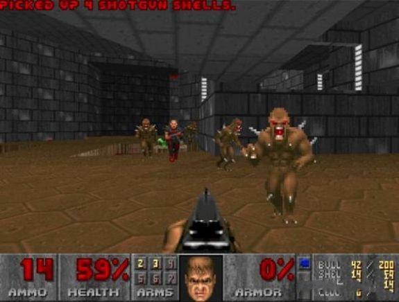 引擎在诞生初期的另一部重要游戏出自id Software公司的第一人称射击游戏——《Doom》。Doom引擎在技术上大大超越了《德军司令部》,虽然游戏的关卡还是维持在2D平面上进行制作,但墙壁的厚度可以为任意,并且路径之间的角度也可以为任意,这使得楼梯、升降平台、塔楼和户外等各种场景成为可能。