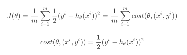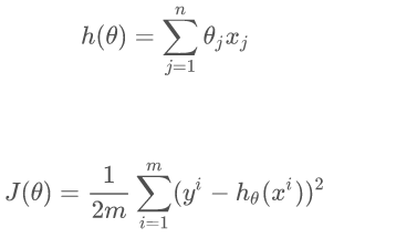 比如对一个线性回归模型,假设下面的h(x)是要拟合的函数,J(theta)为损失函数,theta是参数,要迭代求解的值,theta求解出来的那最终要拟合的函数h(theta)就出来了。其中m是训练集的样本个数,n是特征的个数。