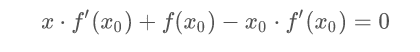 (这里f'表示函数f的导数)。然后我们计算穿过点(x0,f(x0))并且斜率为f'(x0)的直线和x轴的交点的x坐标,也就是求如下方程的解: