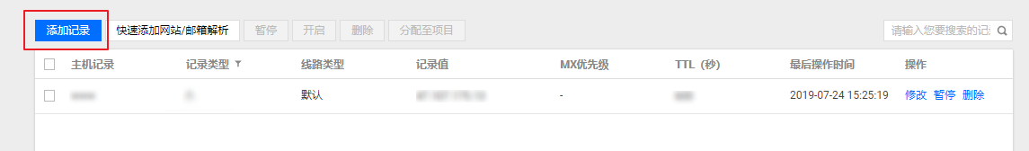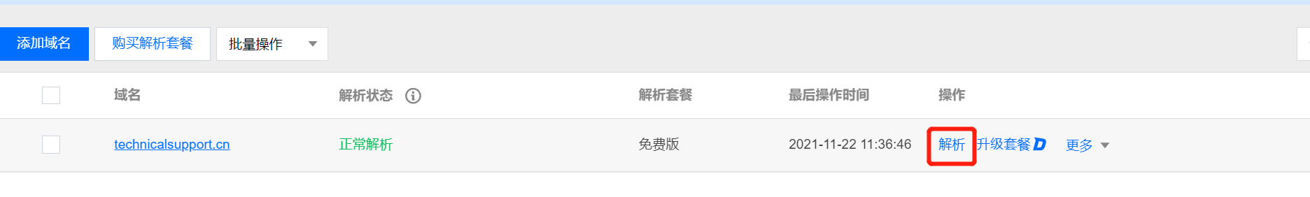,单击解析进入解析配置界面。 - 单击添加记录。