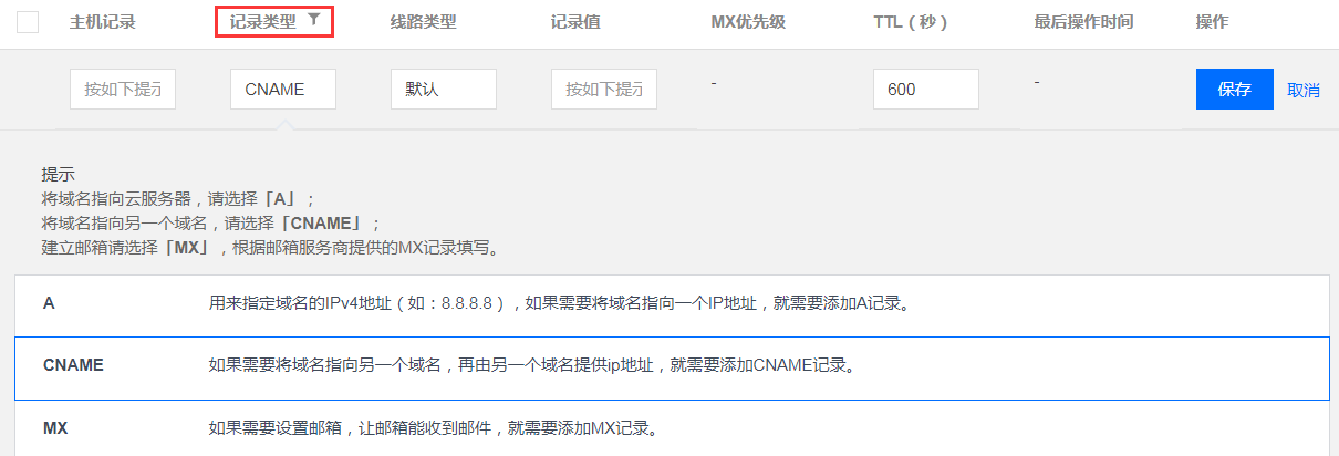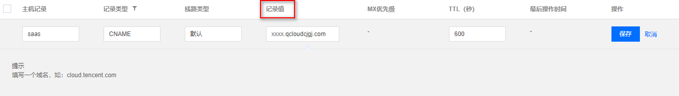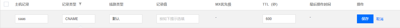 ,即填写 saas 。 - 记录类型选择 CNAME。