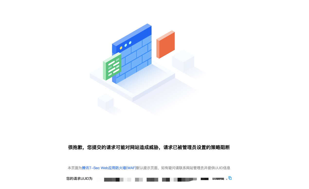 ii. 浏览器返回阻断页面,说明 Web 应用防火墙防护功能正常。