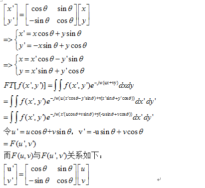 可见f(x,y)与旋转 后的f(x’,y’)的频域图形也同步为 的偏差