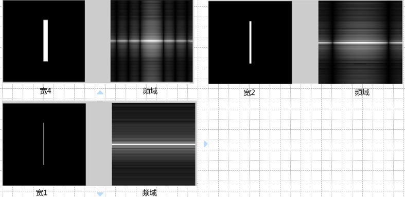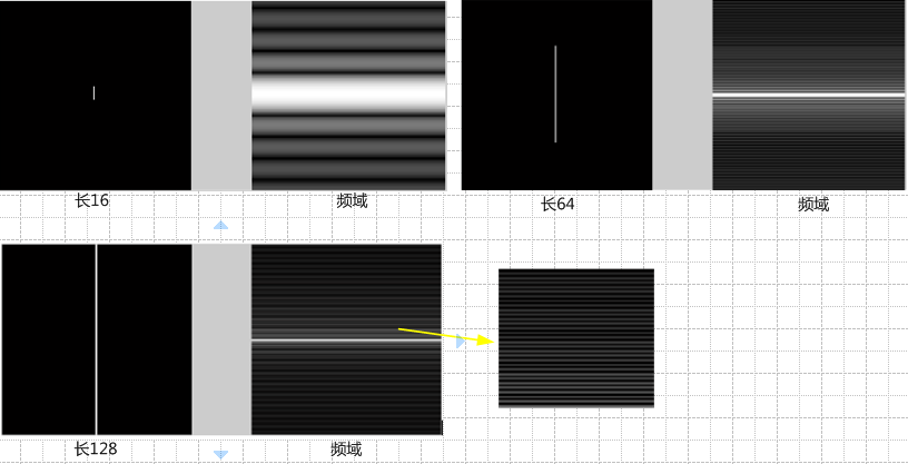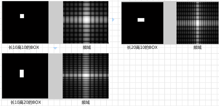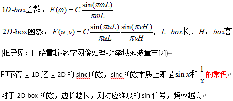 直线可看成box函数的特例,即长宽比特别大的:边长越长,对应方向块效应频率越高;边长越短,对应方块效应频率越低。