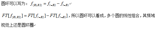 结合FT的可加性、旋转同步性、直线函数频域图像,可以推测圆域函数的FT应该类似于直线一样是成周期性的衰减圆环状。