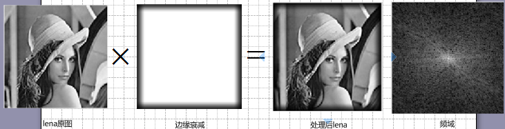 接下来我们对边缘进行衰减,即可大大降低边缘阶跃效应。可以看到,边缘衰减后,FT图的中心亮线几乎消失。