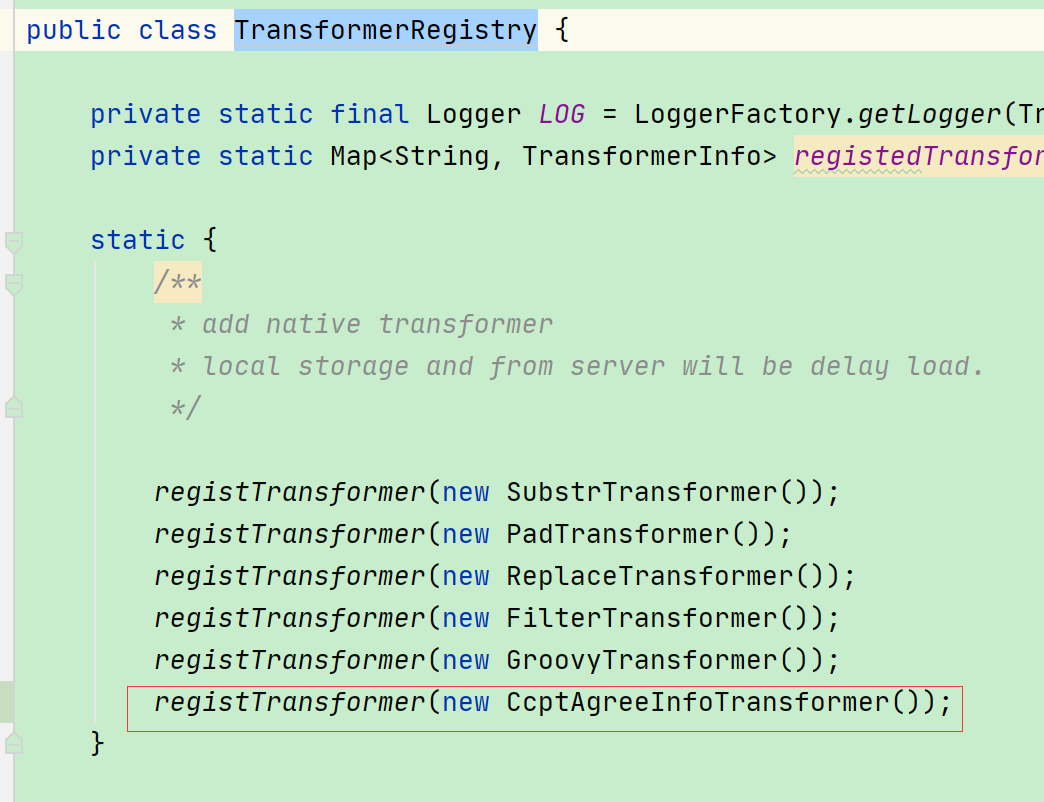 在TransformerRegistry类中注册自己编写的转换器