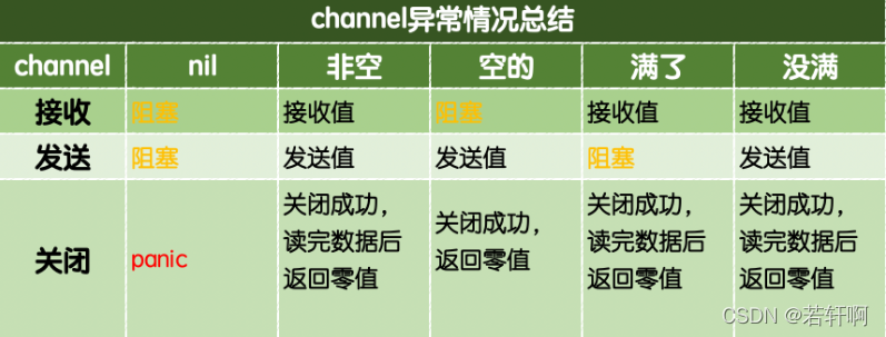 如图,总结,可以看出,产生阻塞的方式,主要容易踩坑的有两种:空的通道一直接收会阻塞;满的通道一直发送也会阻塞!