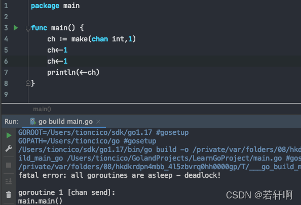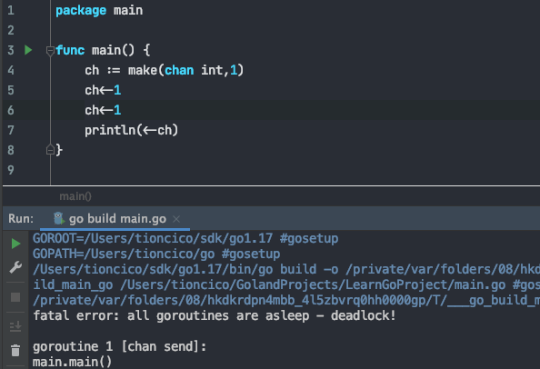 fatal error: all goroutines are asleep - deadlock!goroutine 1 [chan send]: main.main()