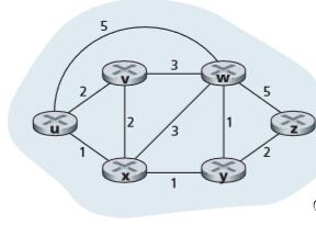 1、初始化:N' = {u} for all nodes for n if n is a neighbor of u then D(n) = c(u,n) else D(n) = ∞ 2、循环阶段find w not in N' such that D(w) is a minimum add w to N' update D(n) for each neighbor n of w and not in N' D(n) = min( D(n) , D(w)+c(w,n) ) until N' = N