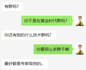等到我有了黄金时代群,仍然有极个别的人觉得这群配不上他。要知道这个群里面可真的是卧虎藏龙啊,里面有很多大佬,他竟然假装不知道。