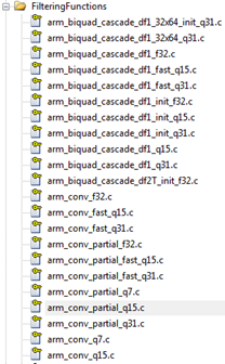 主要是滤波函数,如IIR,FIR,LMS等,下面是部分API截图: