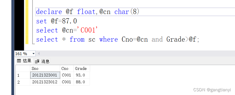 变量赋值 注意:sql语言必须先声明变量再赋值,不能和编程语言那样声明的同时也赋值