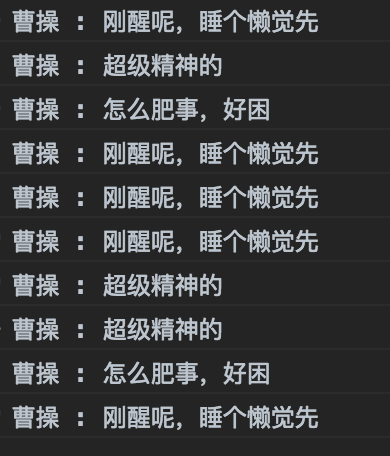 }TiredState.prototype.behaviour = function() {console.log(this.work.name, ':', '怎么肥事,好困');// 不知不觉,又变成了刚醒着的状态... 不断循环呀setTimeout(() => {this.work.setState(this.work.wakeUpState);}, 1000);