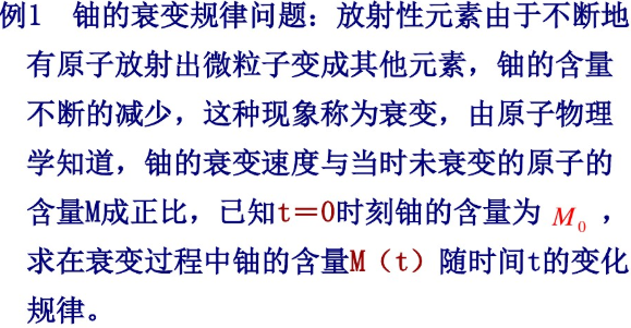 在数学、力学、物理、化学等学科中许多自然现象所满足的规律已为人们所熟悉,并直接由微分方程所描述。如牛顿第二定律、放射性物质的放射性规律等。我们常利用这些规律对某些实际问题列出微分方程。