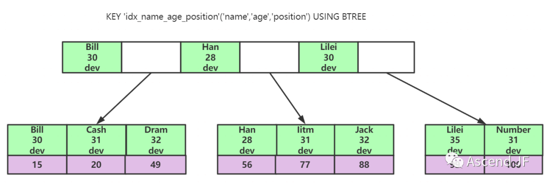 EXPLAIN SELECT * FROM employees WHERE name >``'LiLei'AND age =``22 AND position =``'manager'``;
