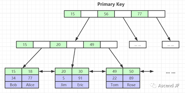 B+Tree即使数据达到千万级别时高度依然维持在3层左右,也就是说一次数据查询操作只需要做3次的磁盘 I/O 操作就能查询到目标数据。而二叉树的每个父节点有两个子节点,数据量的增大必然导致高度的快速增加,对那种逐渐增大的数据查询相当于链表查询,效率低下。