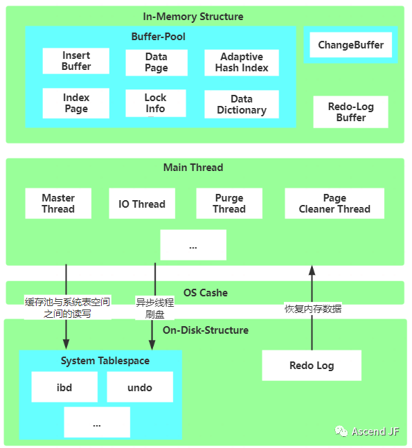 内存中的结构主要包括Buffer Pool,Change Buffer、Adaptive Hash Index以及Log Buffer四部分。
