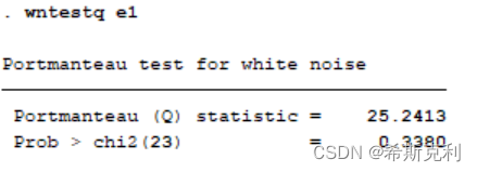 (4)由检验结果,BG检验P值为0.4603,Q检验P值为0.3380,均大于0.05,故不拒绝原假设,认为不存在自相关。