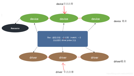- bus :总线对象,描述一个总线,管理device和driver,完成匹配