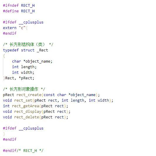我们建立一个rect.h的头文件,在这里声明我们对外提供的几个接口。这时候我们头文件可以设计为: