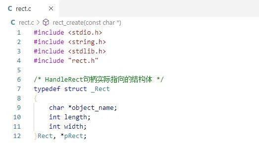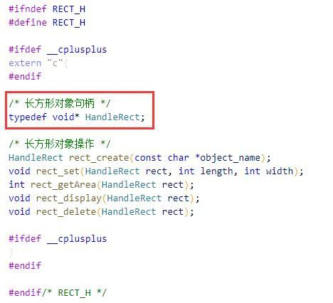 我们也可以创建我们的对象句柄,对外提供的头文件中只需暴露我们的对象句柄,不用暴露具体的实现。以上头文件rect.h代码可以修改为:
