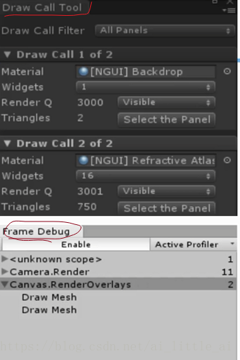 在制作功能界面时,DrawCall控制 NGUI>UGUI
