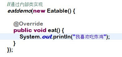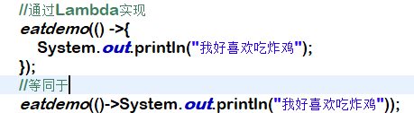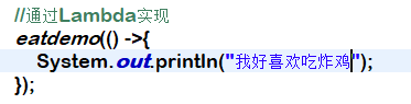 eatdemo(()->System.out.println("我好喜欢吃炸鸡"));