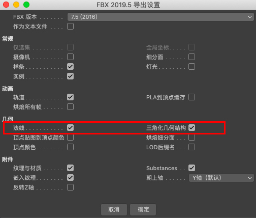 几何——只勾选“法线”,不勾选“三角化几何结构”(默认是不会勾选的),会有问题