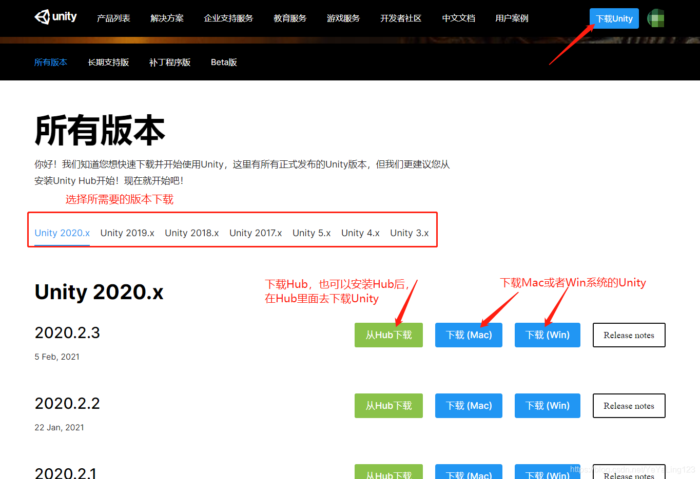 官网下载Unity版本: