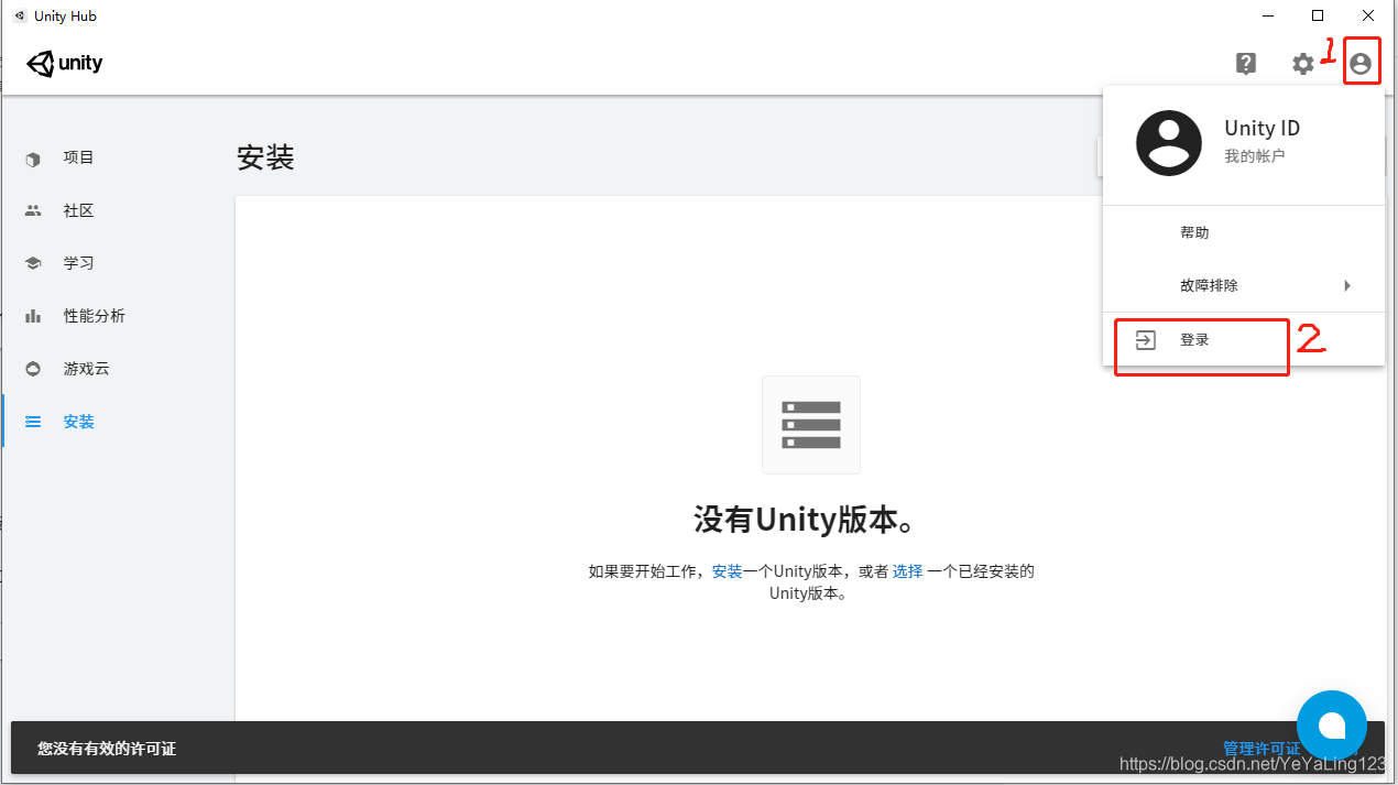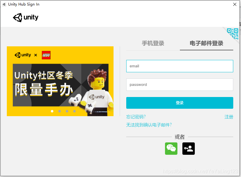 首先需要先登录在Unity官网注册的账号:
