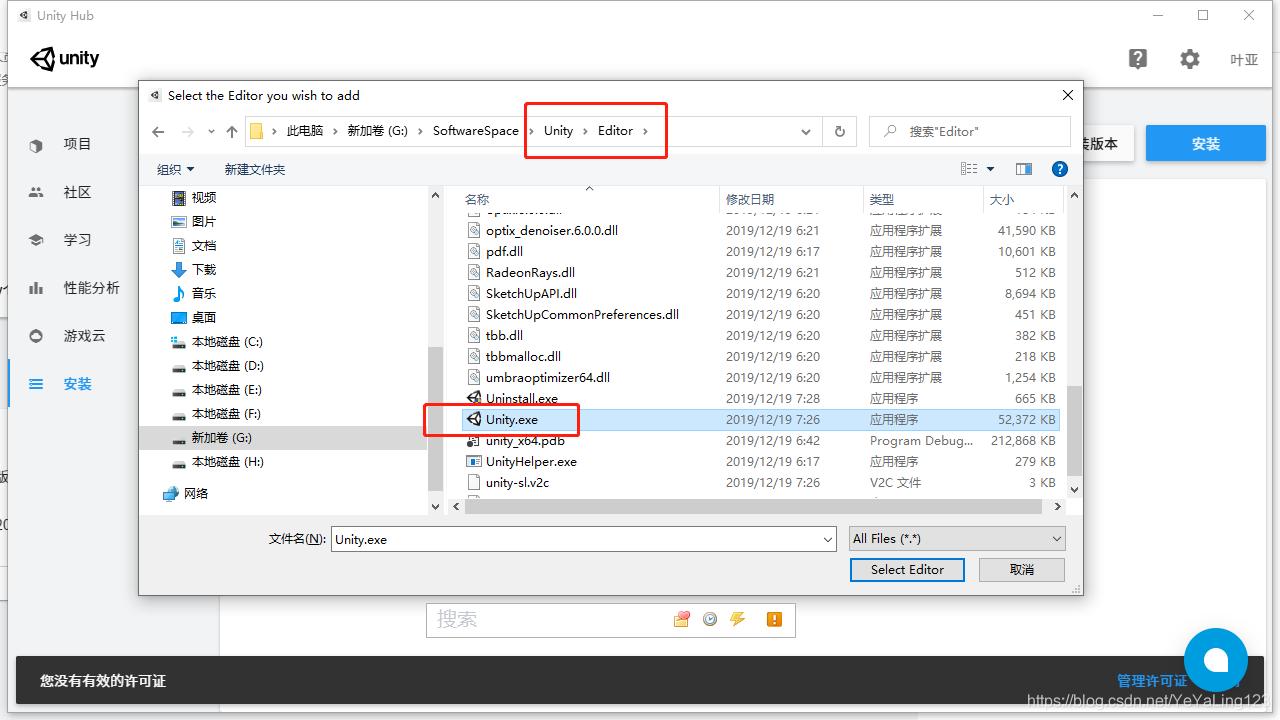 选择Unity安装路径下的Unity.exe