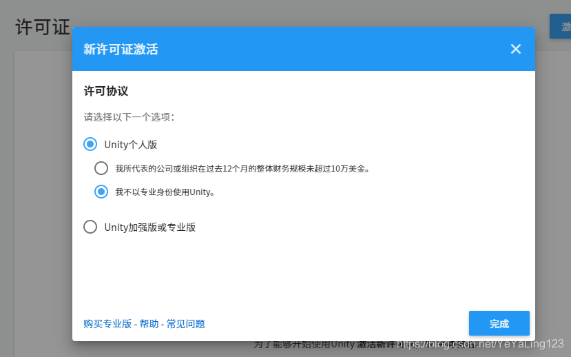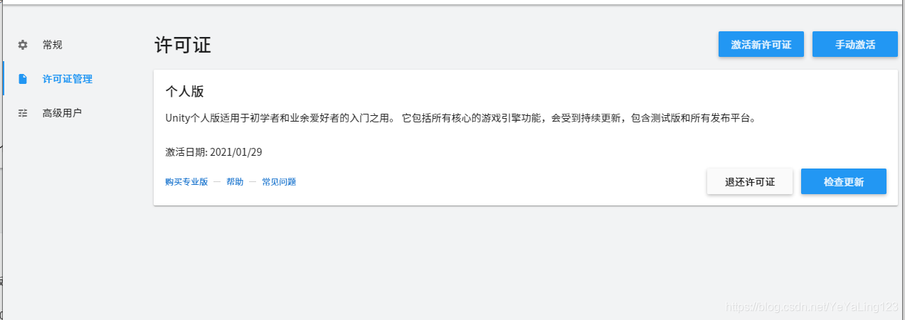 获取许可证,激活Unity: