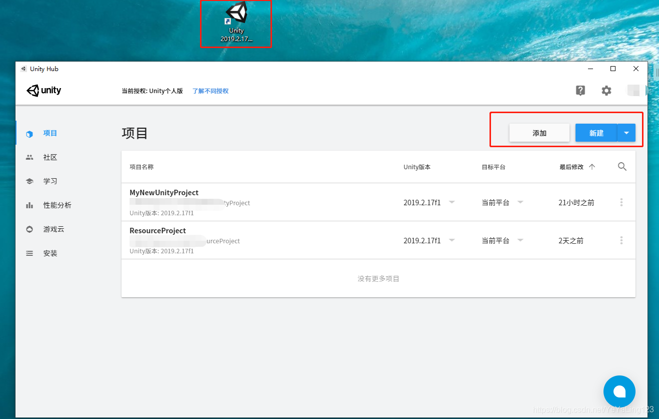 个人版激活,打开Unity Hub: