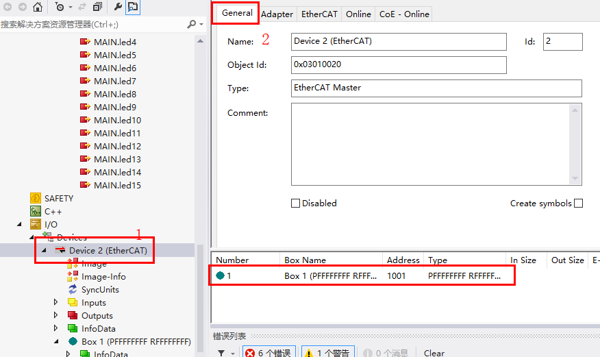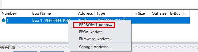 对于新板子而言,ET1100核心板的EEPROM是没有任何信息,因此在使用前需要进行EEPROM UPADATE,否则操作无法查询到合适的Box,如下所示。