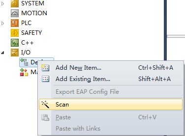 将ESI文件复制到TwinCAT的目录中。将工程目录下.xml文件复制到C:\TwinCAT\3.1\Config\Io\EtherCAT中。然后打开TwinCAT 3进行如下操作:
