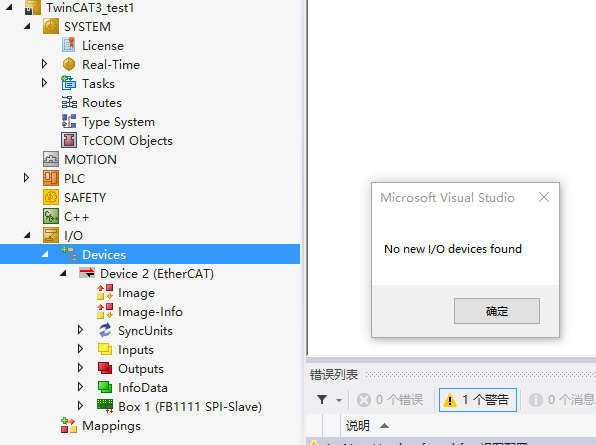 由于工程中存在Device,可能会显示“No new I/O devices found”
