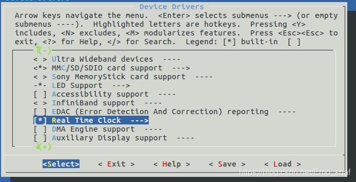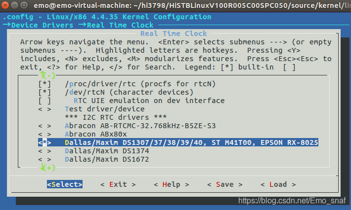 /RTC 搜索。 进入device drivres------real time clock ,选中 再进入选中ds1307