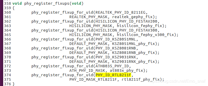 发现Higmac.c调用phy_register_fixups最终指向