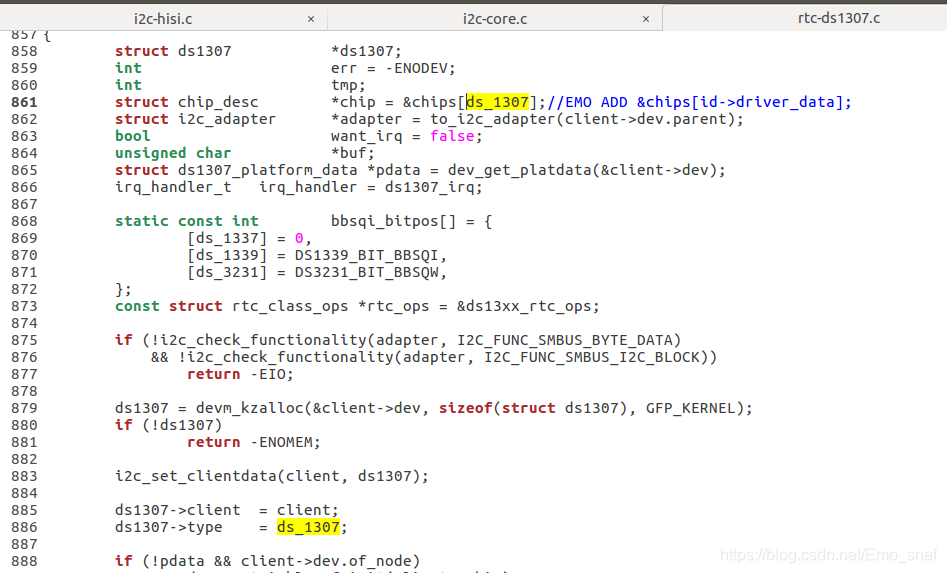 烧写后系统运行提示OPPS,查看说有空指针。最后定位在chips[id->driver_data]上。将rtc-ds_1307.c中chips[id->driver_data]改成ds_1307就好了(此处改动有些武断,也请高手指点)