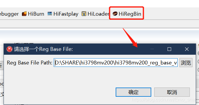 首先将芯片切换成HI3798MV200,点击HIREGBIN,弹出对话框,选择对应文件