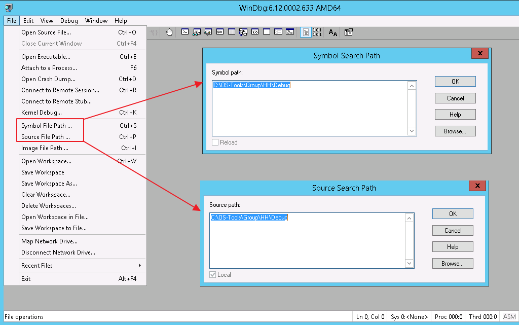 3. 打开WinDBG程序并设置符号文件路径以及源程序文件路径