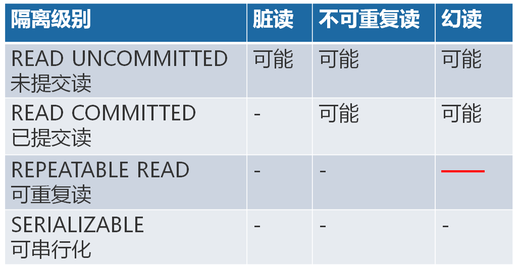 SQL标准中规定,针对不同的隔离级别,并发事务可以发生不同严重程度的问题,具体情况如下: