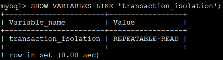 SHOW VARIABLES LIKE 'transaction_isolation';